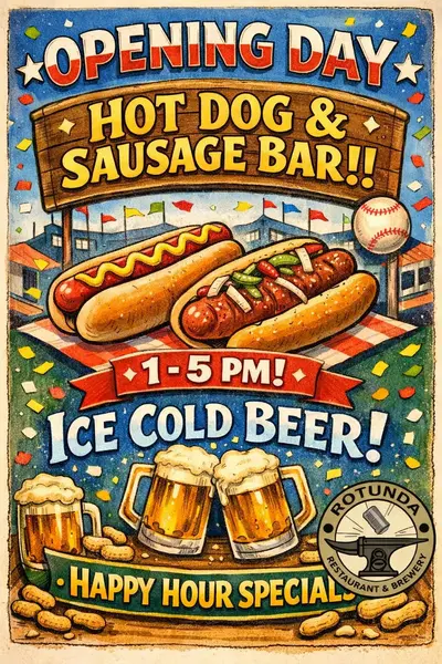 Opening day hot dog and sausage bar!! Lots of ballpark condiments – 1-5 pm! Ice cold beer! Happy hour specials! Go Mets!